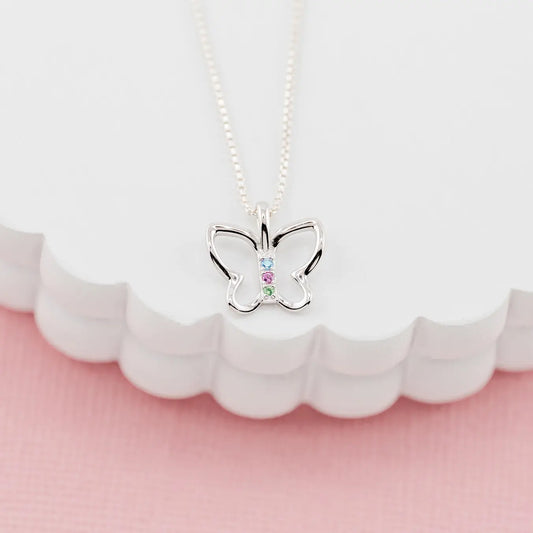 Girls Sterling Silver Butterfly Necklace w/ Multi-Color Czs
