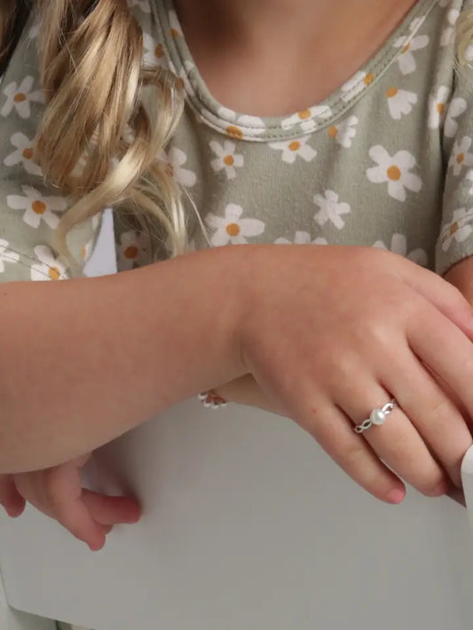 Girls Sterling Silver Freshwater Pearl Baby Ring For Kids