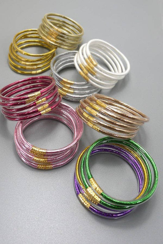 JELLY TUBE GLITTER FOIL BANGLE BRACELETS SET | 40B105: GOLD