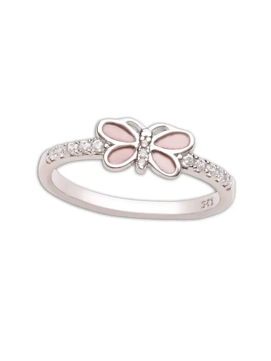 Kids Sterling Silver Pink Butterfly Baby Ring with Czs