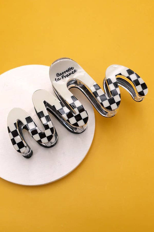 JUMBO WAIVY ACRYLIC CHECKER HAIR CLAW CLIPS | 40H718