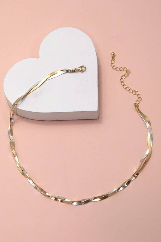 INTWINED GOLD SILVER HERRINGBONE NECKLACE | 80N458