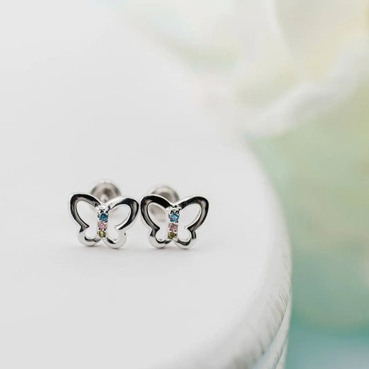 Kids Sterling Silver Rainbow Butterfly Earrings