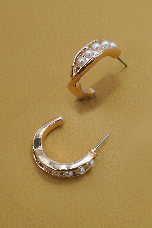 INTERTWINED PEARL HOOP TITANIUM POST EARRINGS | 31E50198