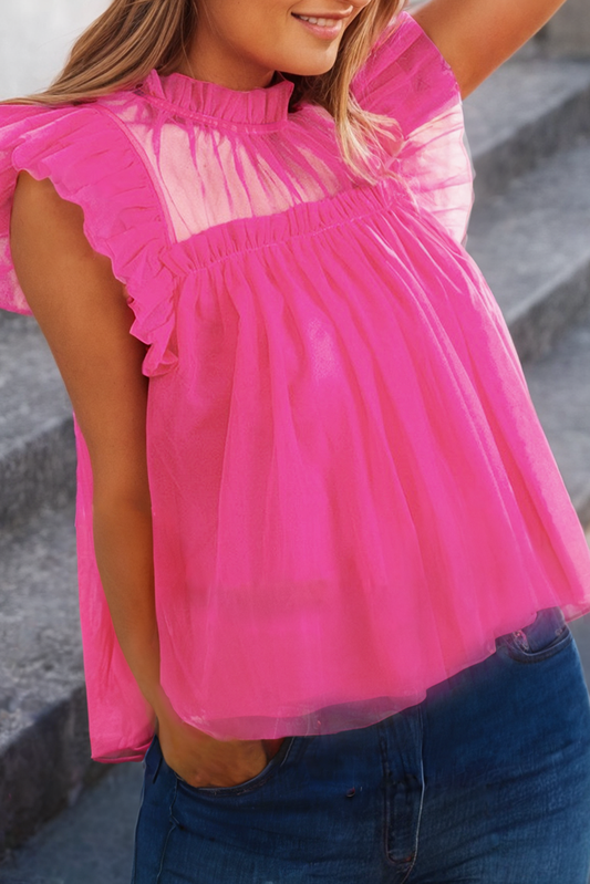 LDC Tulle Ruffle Sleeve Flared Babydoll Spring Blouse