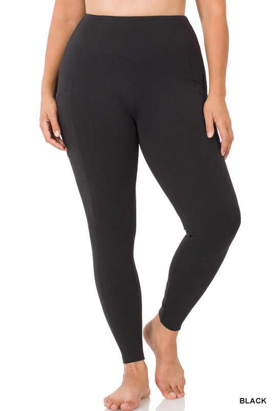 PLUS BETTER COTTON WIDE WAISTBAND POCKET LEGGINGS-BLACK