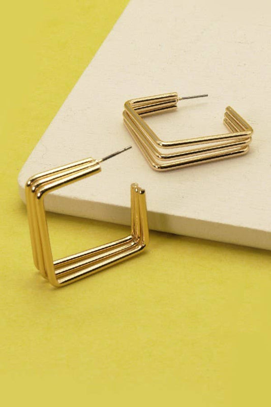 TRI ROW MODERN SQUARE HOOP EARRINGS | 31E21867