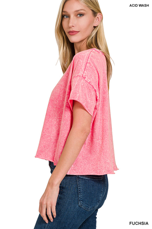 WASHED CREW NECK SHORT SLEEVE CROPPED T-SHIRT