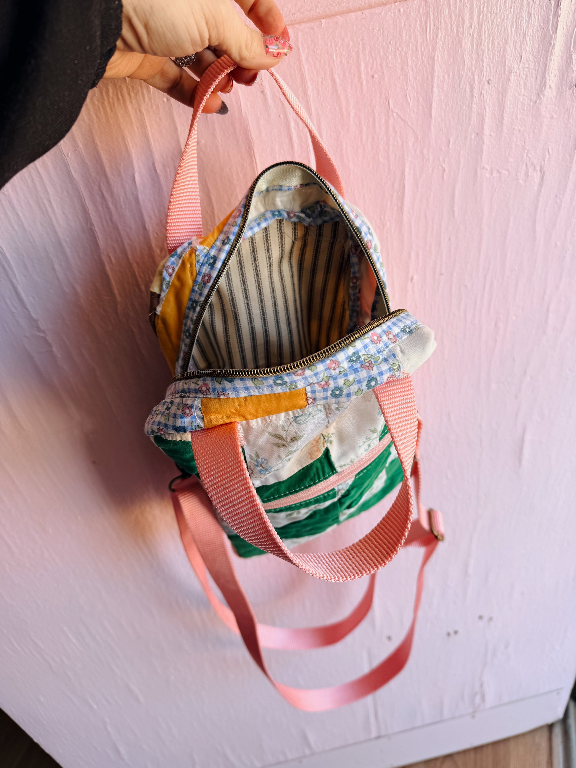 Because this bag is created from pre-loved textiles, gentle fading, small imperfections, or signs of age are part of the charm and authenticity — not flaws.